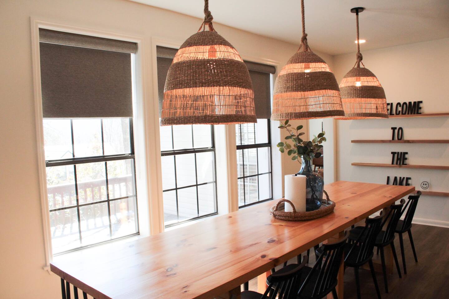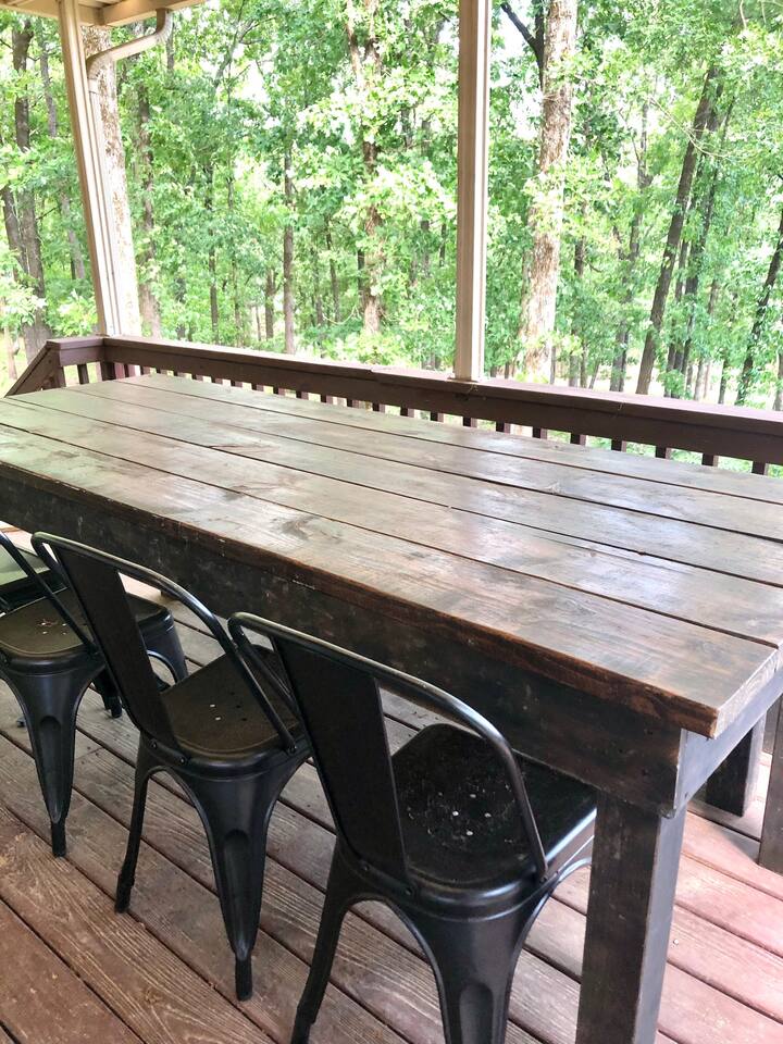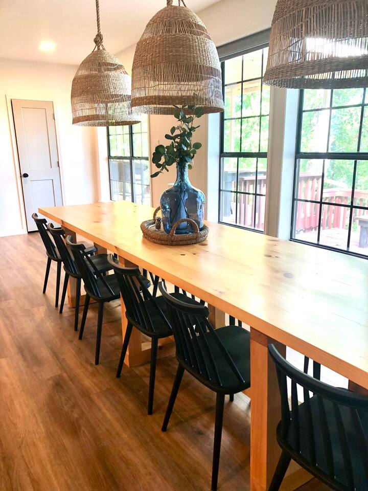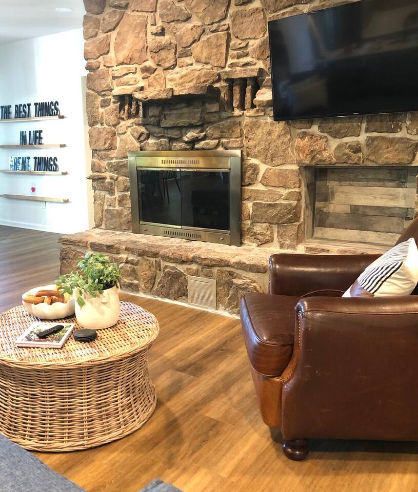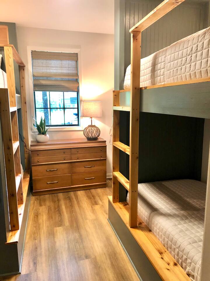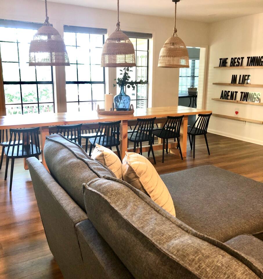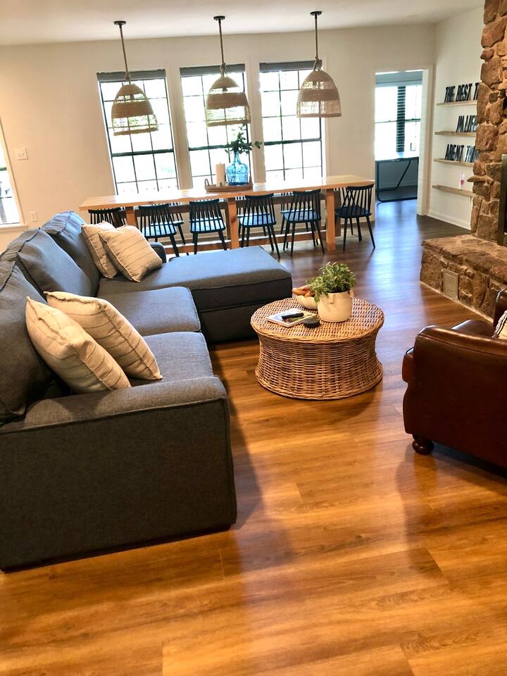 This lake retreat will make the perfect home base for your next family reunion. The home sleeps 11 with 4 bedrooms that include 2 king size beds, 1 queen, 2 sets of bunk beds and an extra twin size mattress tucked away in a closet. The fully stocked kitchen should meet all your needs or fire up the gas griddle for a cookout. If time outdoors is not your thing, the sunroom is a great place to hangout. There is also a designated "puzzle table" tucked in the corner of the living room. Furry friends are allowed with a $25 pet fee per pet!