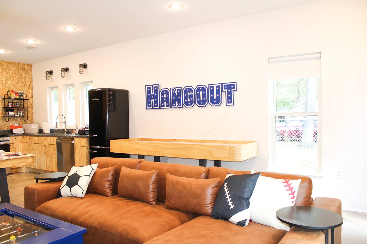 Welcome to "The Hangout," your ultimate vacation getaway in Conway, AR. This spacious and stylish 3-bedroom, 2-bathroom home is the perfect destination for family and friends looking to relax, unwind, and have a blast. Packed with exciting amenities, including ping-pong table, foosball, shuffleboard, and a hot tub you'll never want to leave! TV's in every bedroom allow for the big game in every room!